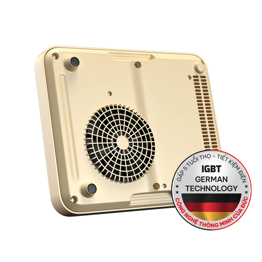 Ngoài ra, quạt tản nhiệt lớn, chân đế chống trượt, cùng hệ thống IGBT ổn định nhiệt giúp bếp hoạt động êm ái và bền bỉ suốt nhiều năm sử dụng.