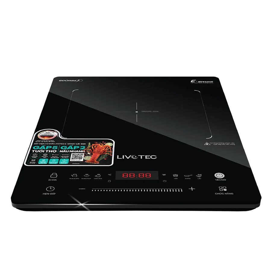 Một trong những điểm sáng nổi bật làm nên giá trị của bếp từ đơn Livotec E-smart LIS-826 chính là công nghệ E-smart độc quyền – giải pháp thông minh giúp nấu nhanh hơn, tiết kiệm điện hơn và bền bỉ hơn theo thời gian.