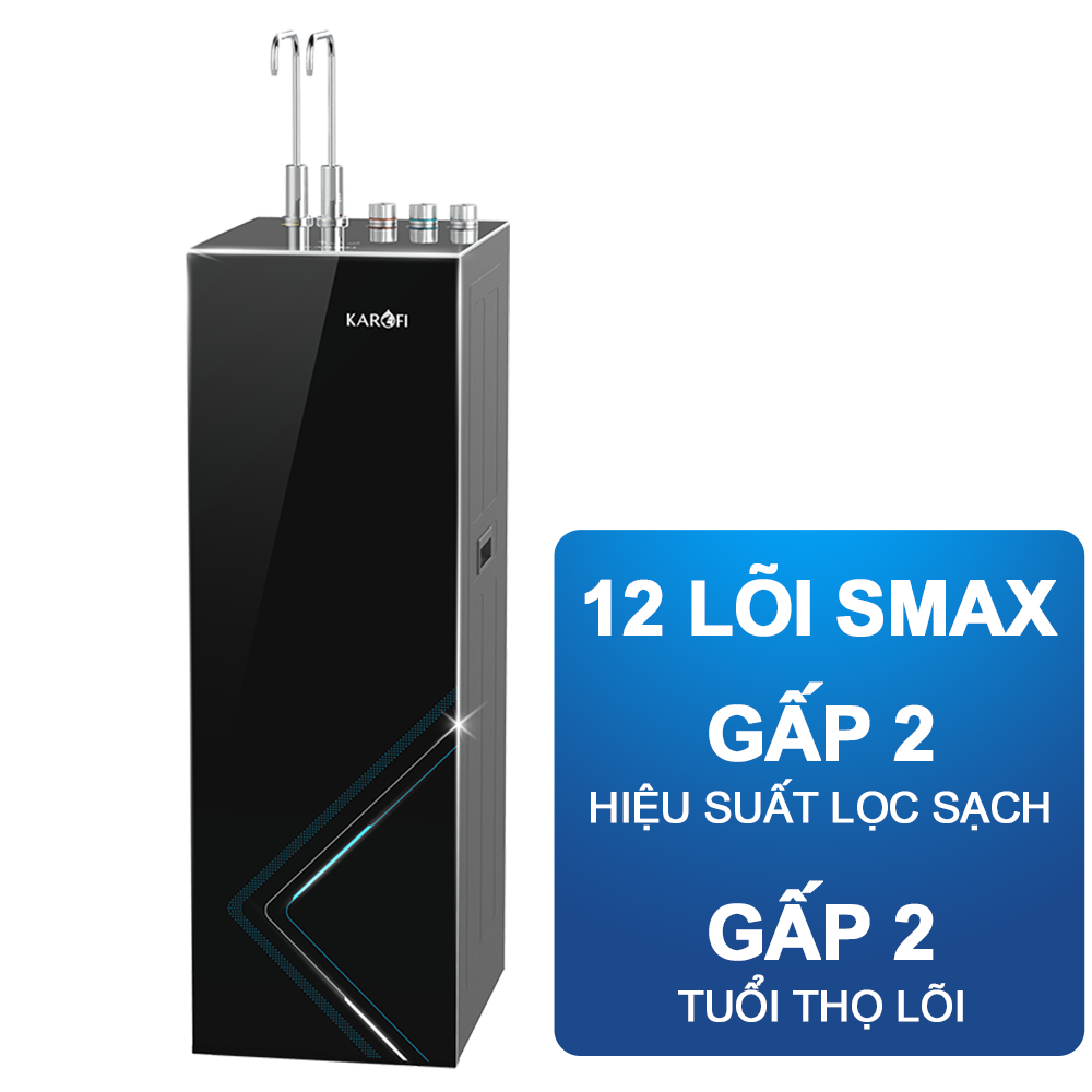 Máy lọc nước nóng lạnh Karofi KAD-EC66 được trang bị hệ thống 12 lõi lọc công nghệ Smax thế hệ mới, giúp gấp đôi hiệu suất lọc và gấp đôi tuổi thọ so với lõi lọc thông thường. Đây là bước đột phá giúp tối ưu chất lượng nước đầu ra, đảm bảo nguồn nước sạch – an toàn – giàu khoáng chất cho mọi gia đình.
